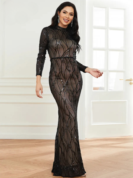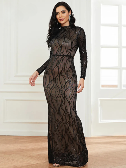 Turtleneck Backless Long Sleeve Bodycon Dress