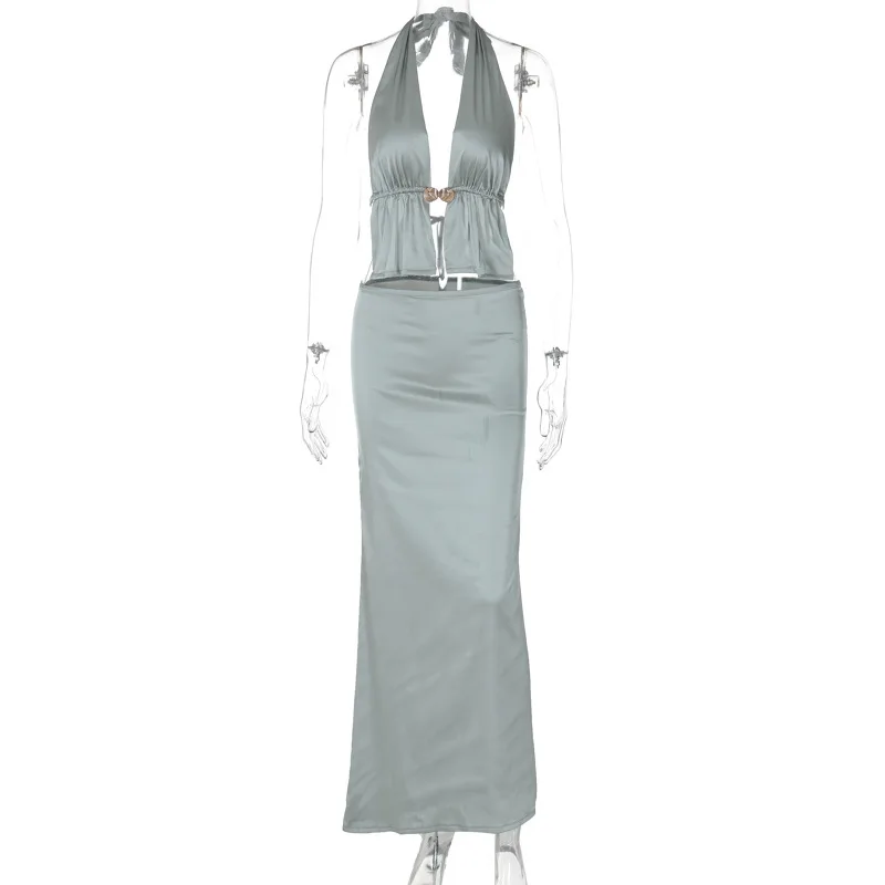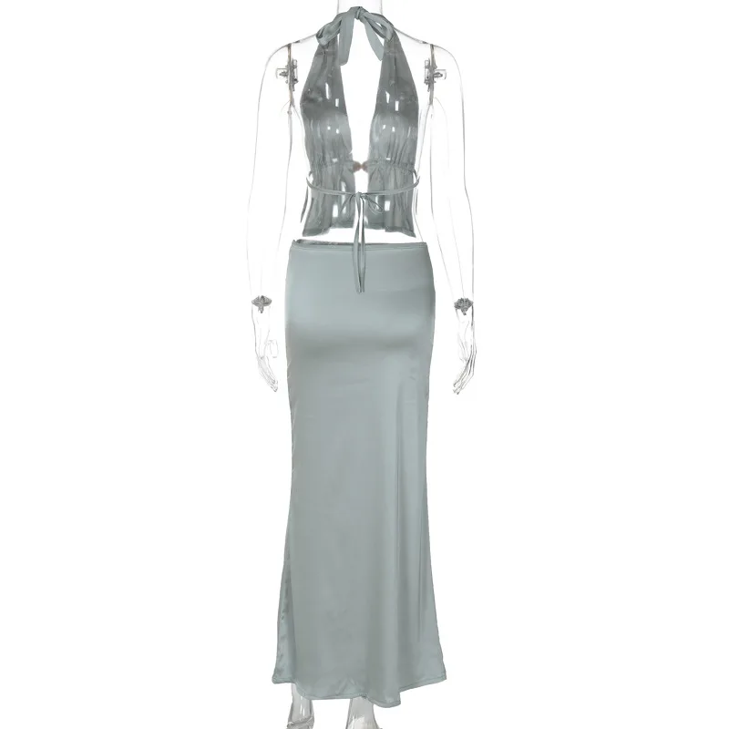 Two Piece Set Backless Halter Crop Top And Skirts Slim Bodycon Outfits