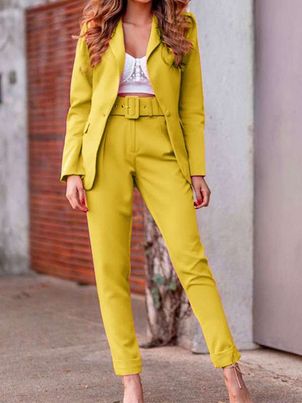 Two Piece Sets Long Sleeves Turndown Collar Outfit