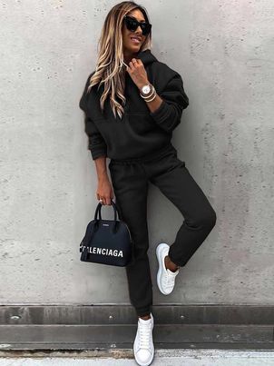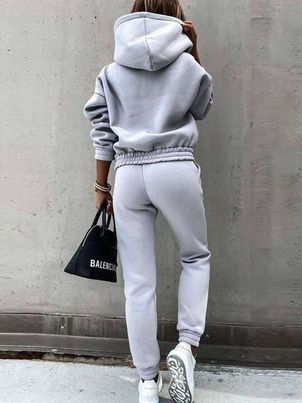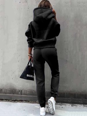 Two Piece Sets Tracksuit Long Sleeves Hooded Straight Pants