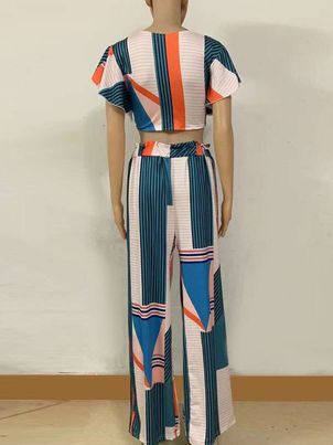 Two Piece Sets V-Neck Lace Up Tube Top Women Outfit