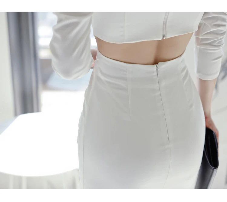 V-Neck Elegant White Profession Sheath Elegant Pencil Bodycon dresses