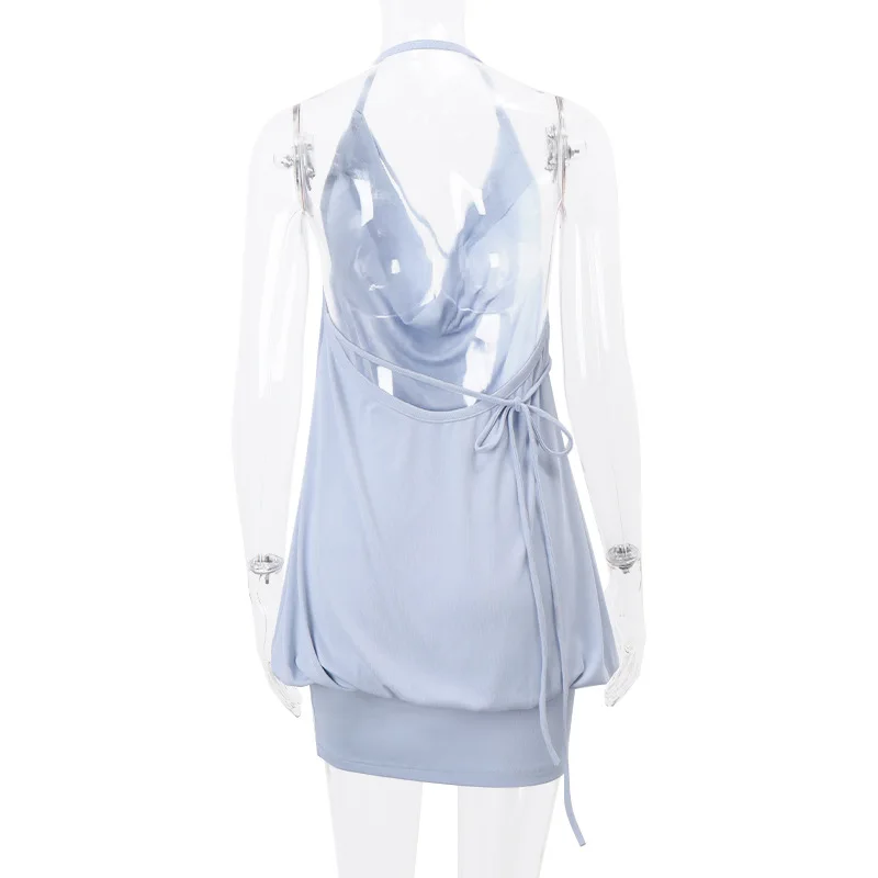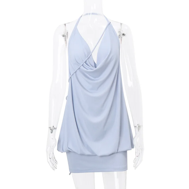 Be the first to review “V Neck Off Shoulder Bandage Sleeveless Mini Backless Dress”