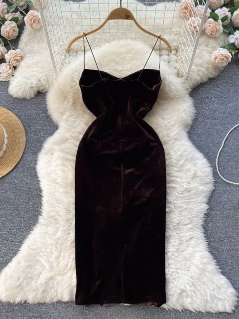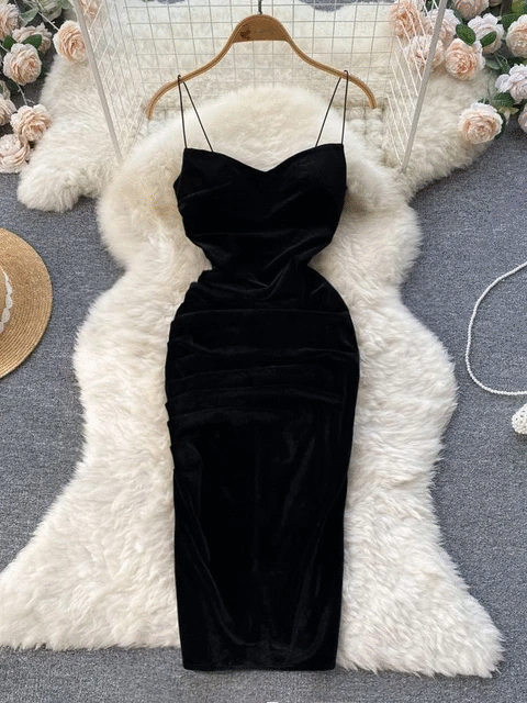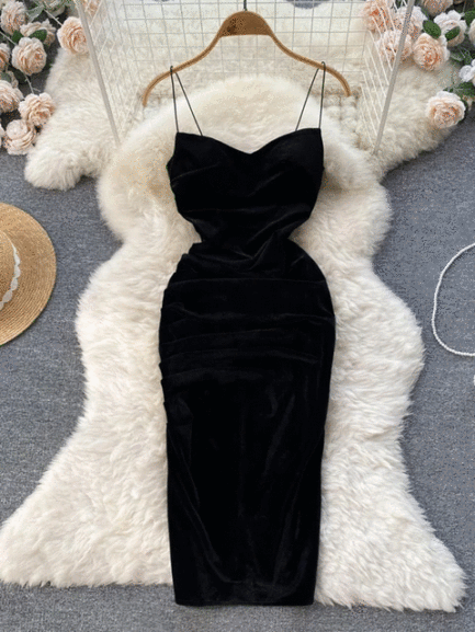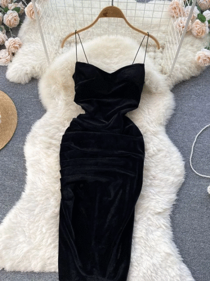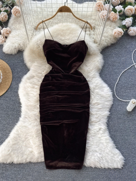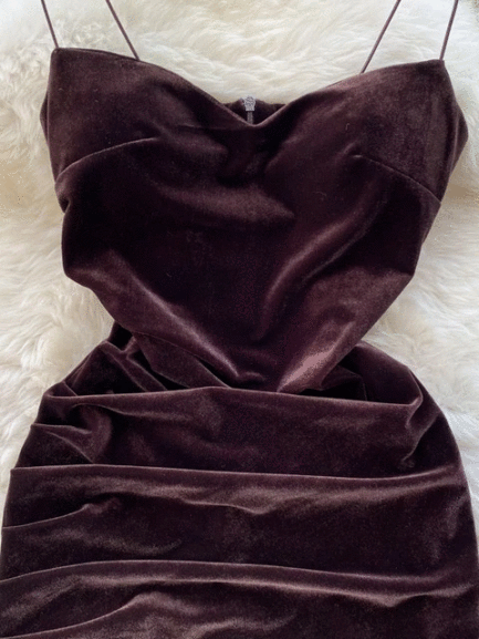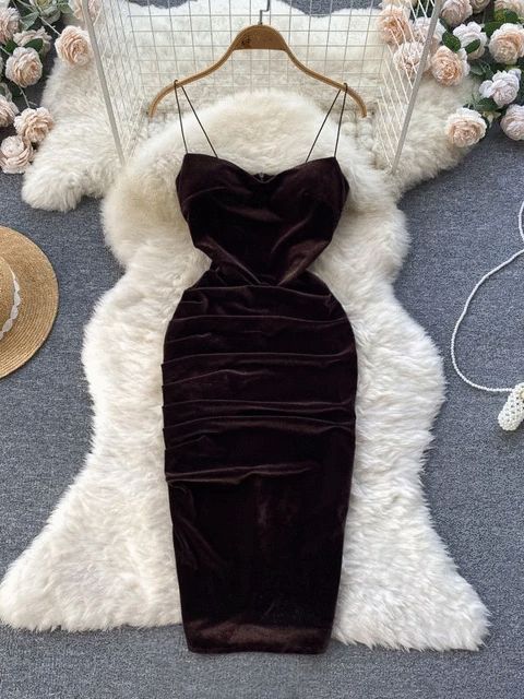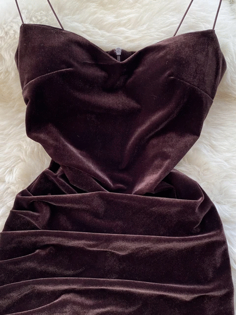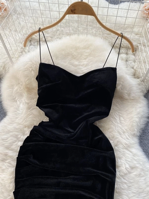 Velvet Spaghetti Strap Bodycon Aesthetic Dress