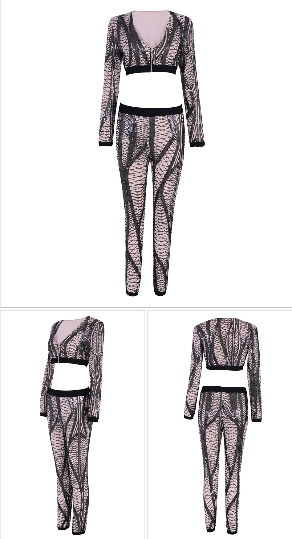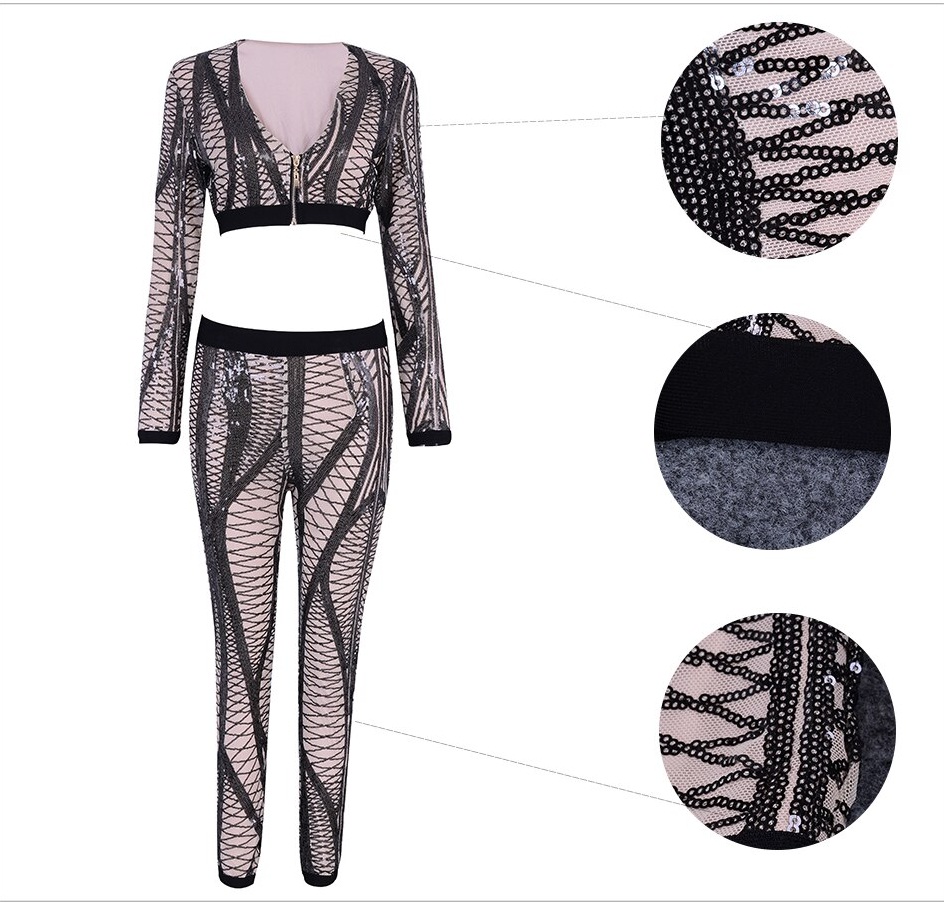 Vestidos Sequins Tops and Pant Two Pieces Evening Party Set