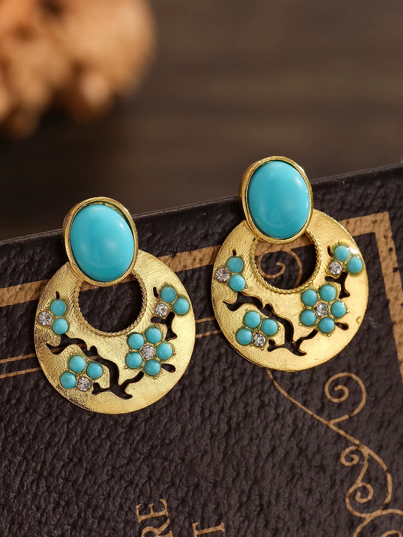 Vintage Bohemian Zinc Alloy Turquoise Pendant Drop Earrings