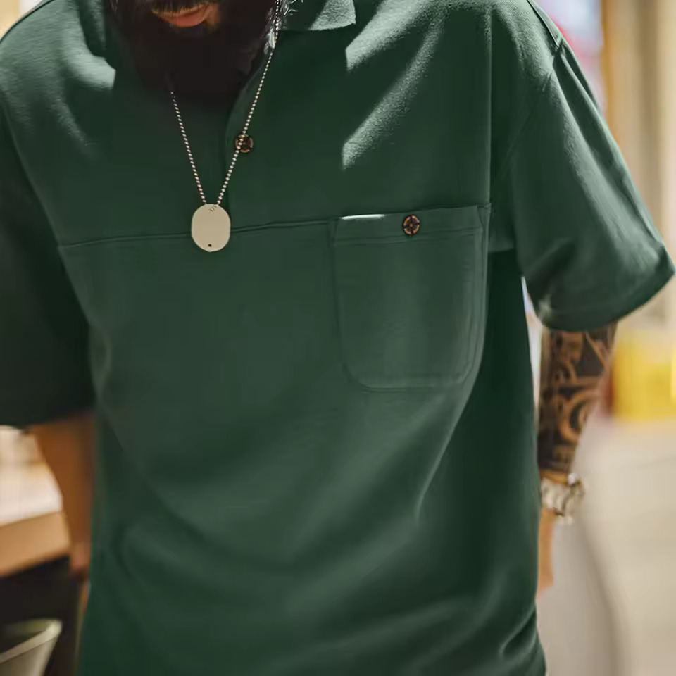 Vintage Business Loose Fit Casual Pocket Short Sleeve Tee Versatile T-Shirt