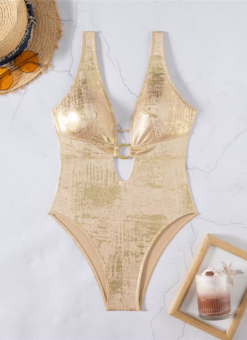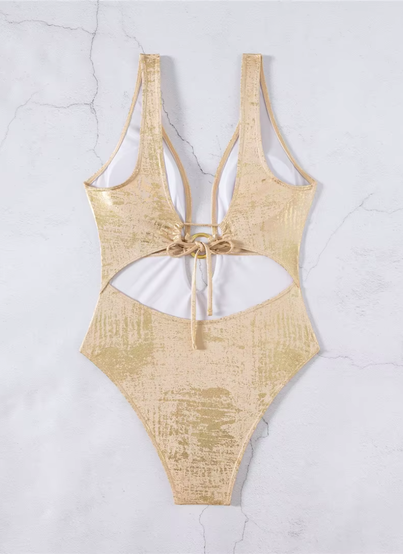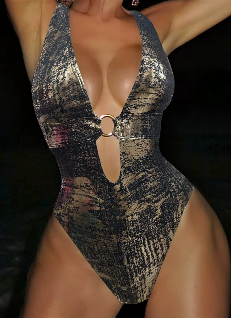 Vintage Deep V Neck High Cut Leg Backless One Piece Swimsuit Swimwear