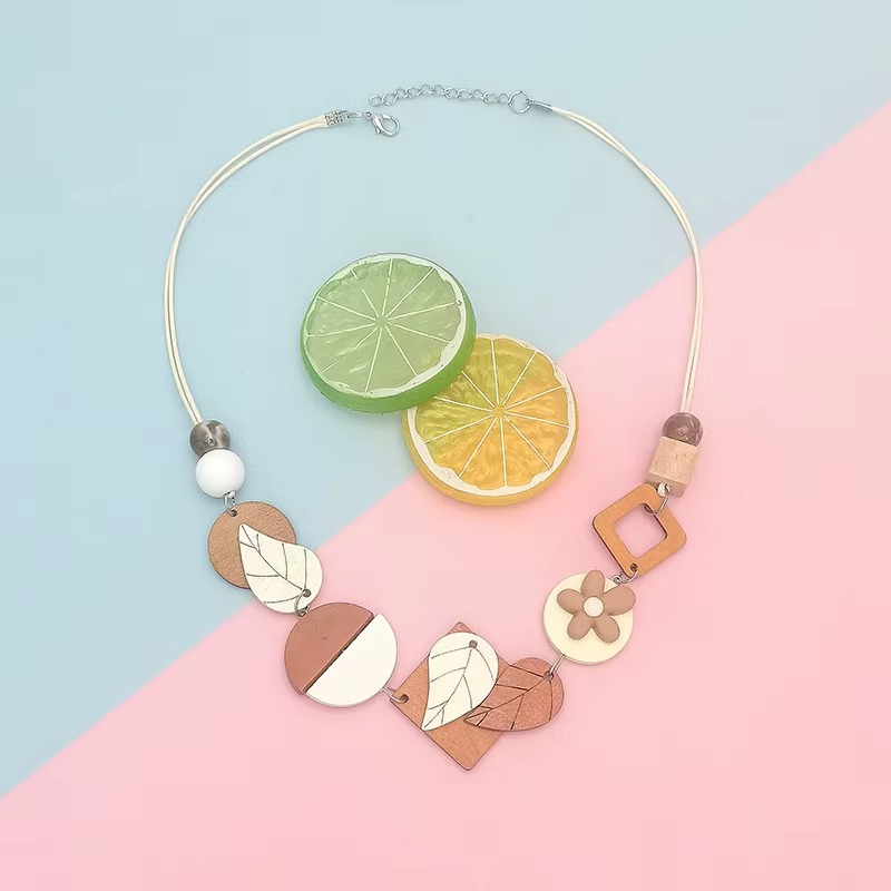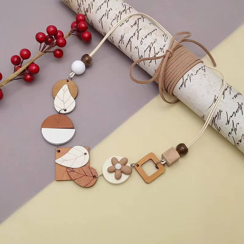 Vintage Ethnic Style with Wooden Decorations Pendants Handmade Necklace