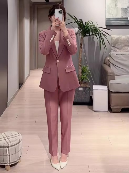 Be the first to review “Vintage Formal Solid Elegant Chic Blazer Coat Straight Pants Two Pieces Pantsuit”