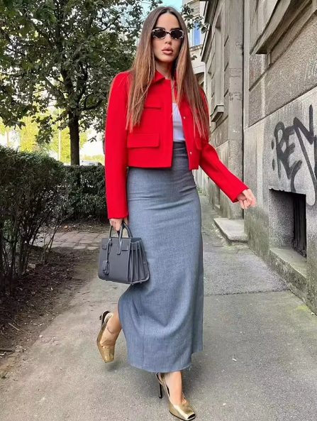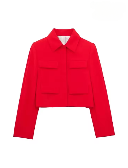 Vintage Long Sleeve Snap-button Flaps Cropped Blazer Coat