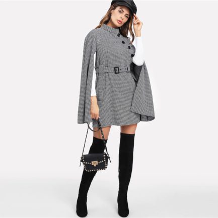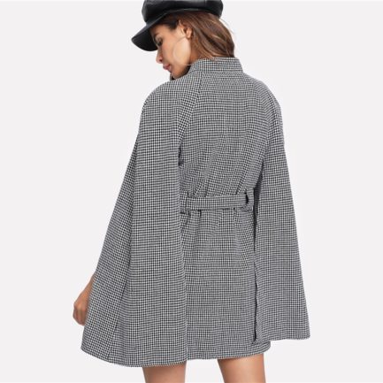 Be the first to review “Vintage Plaid Self Belted Houndstooth Cloak Sleeve Cape Wool Blend Coat”