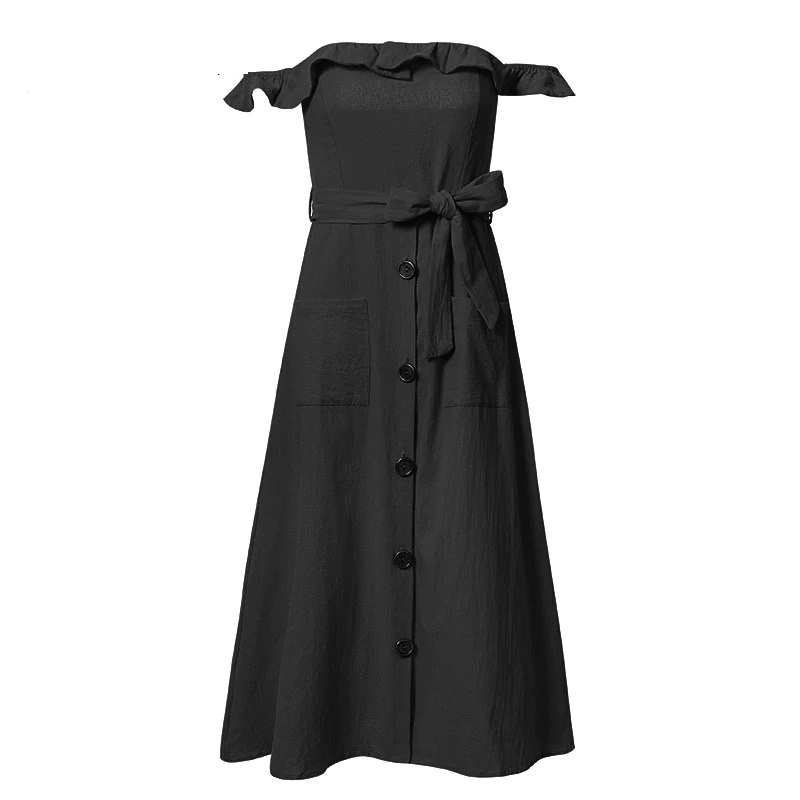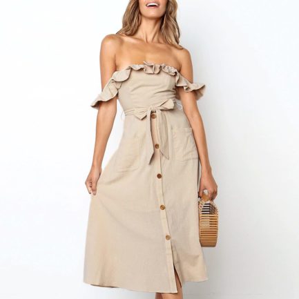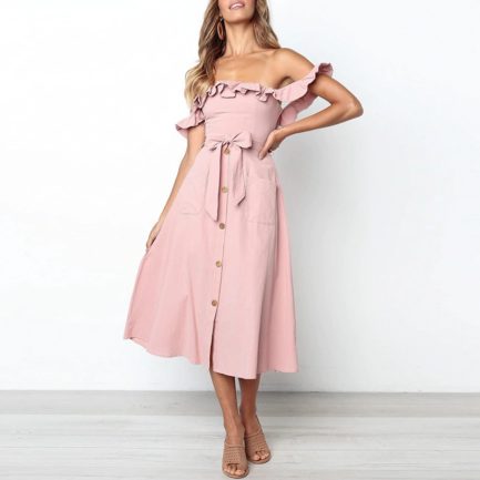 Be the first to review “Vintage Ruffle Sexy Off Shoulder Sashes Midi Dress”