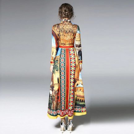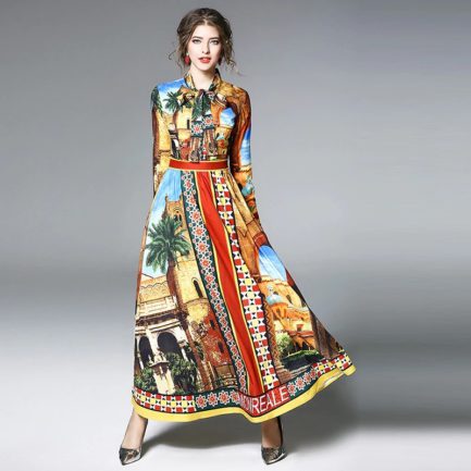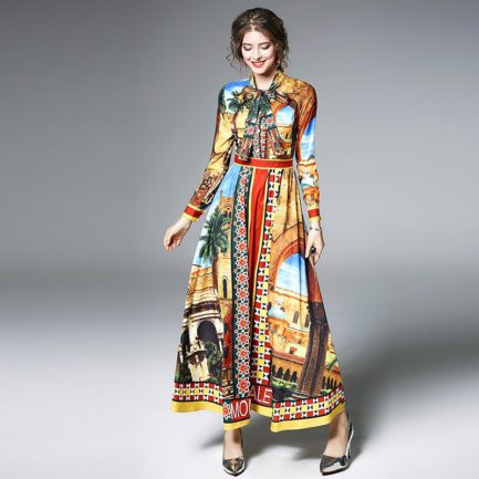 Be the first to review “Vintage Stand A-Line Ankle-Length Printd Bow Long Dress”