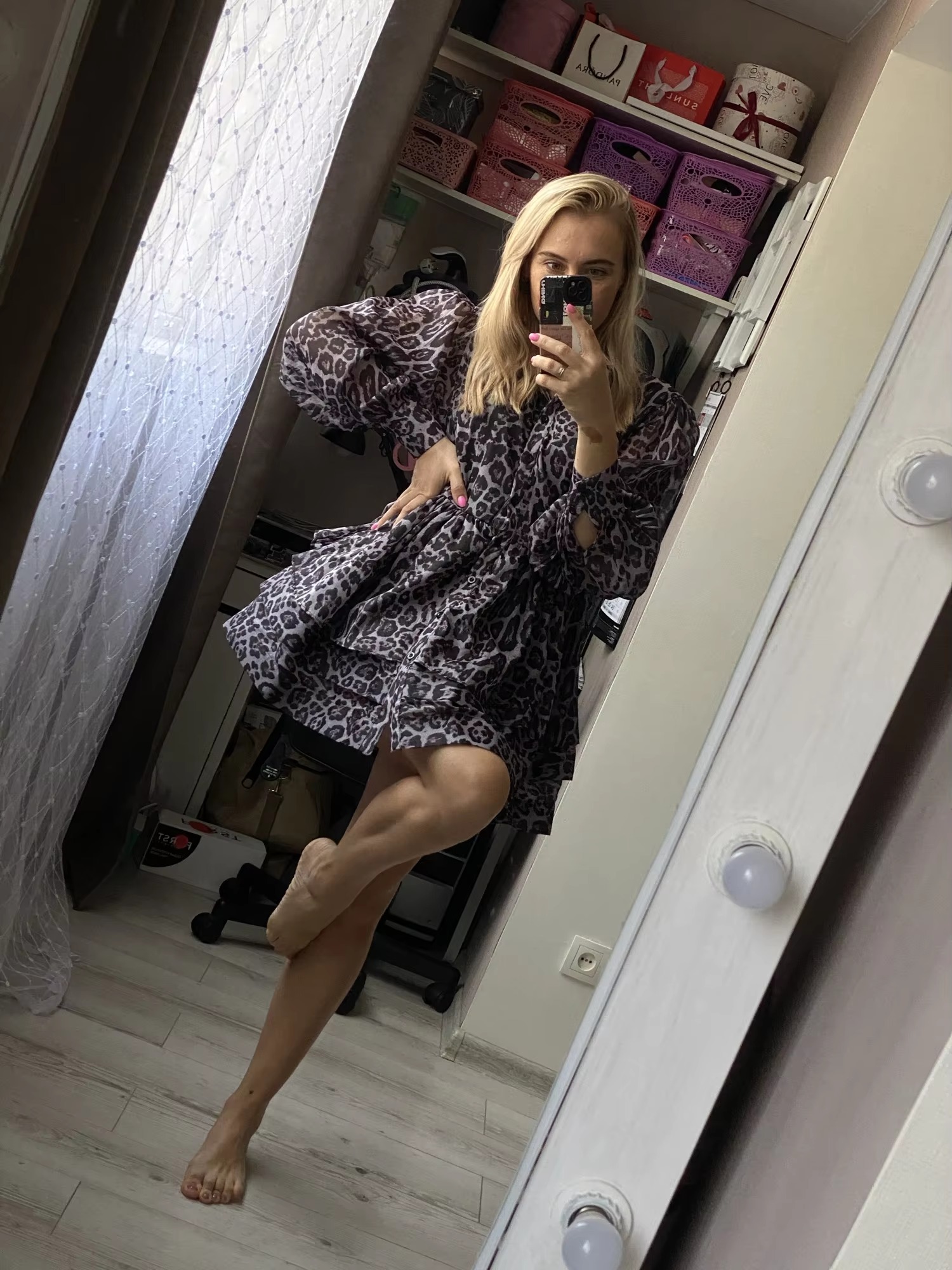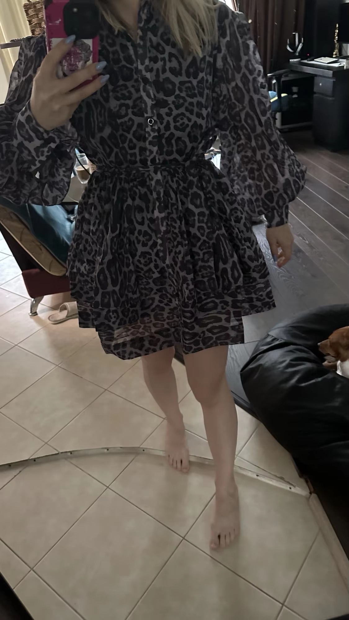 Be the first to review “Vintage Waist Pleated Lapel Long Sleeve Leopard Print Mini Dress”
