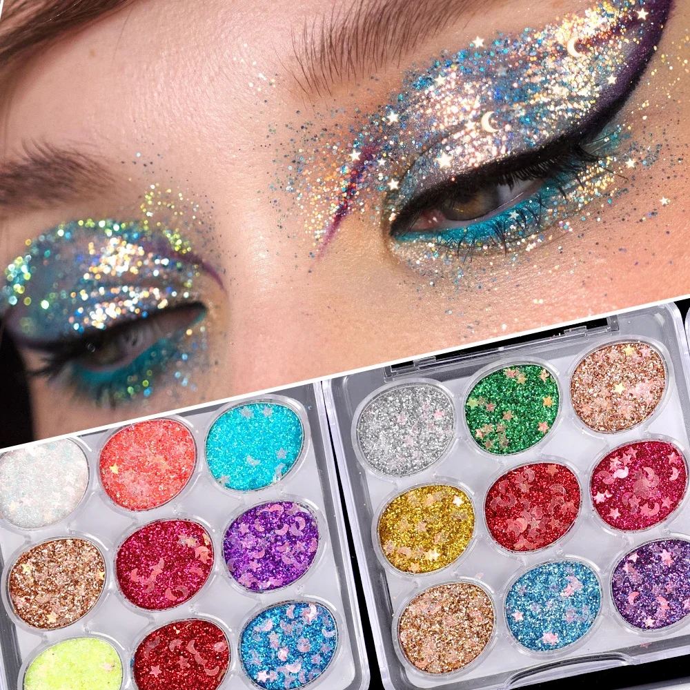 Waterproof Diamond Shiny Metallic Glitter Eye Shadow Highlighter Palette Eyes Makeup