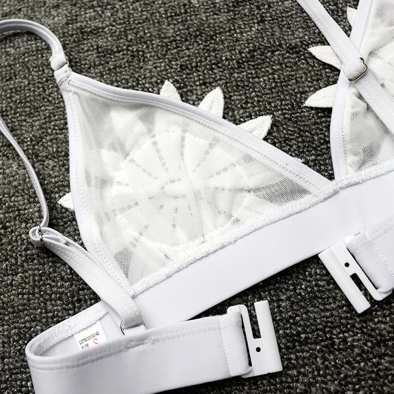 Bathing Suit Bikini See Through Flower Strappy Beach Swimwear