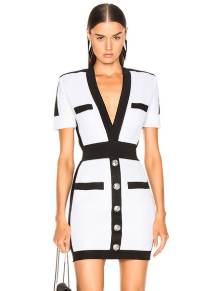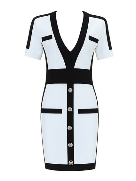 V Neck Short Sleeve Birthday Celebrity Party Bandage Dress