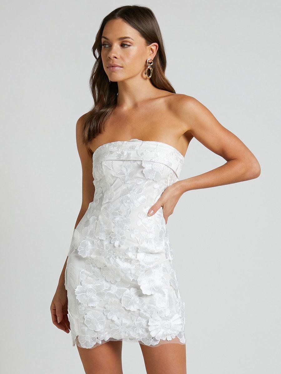 Be the first to review “White Mini Dresses Sleeveless Off Shoulder Floral Applique Short Dress”