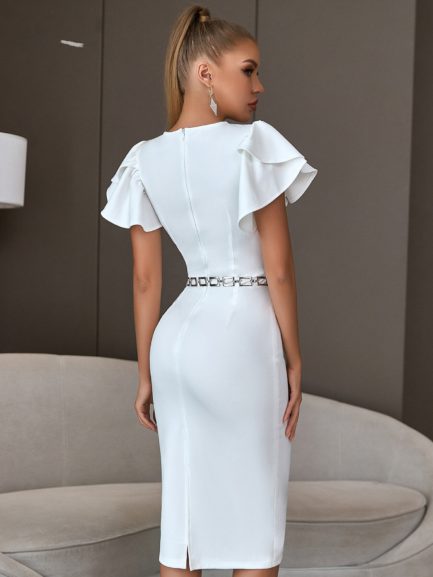 White Party Bodycon Dress Sexy Short Butterfly Sleeve Midi Bodycon Dress