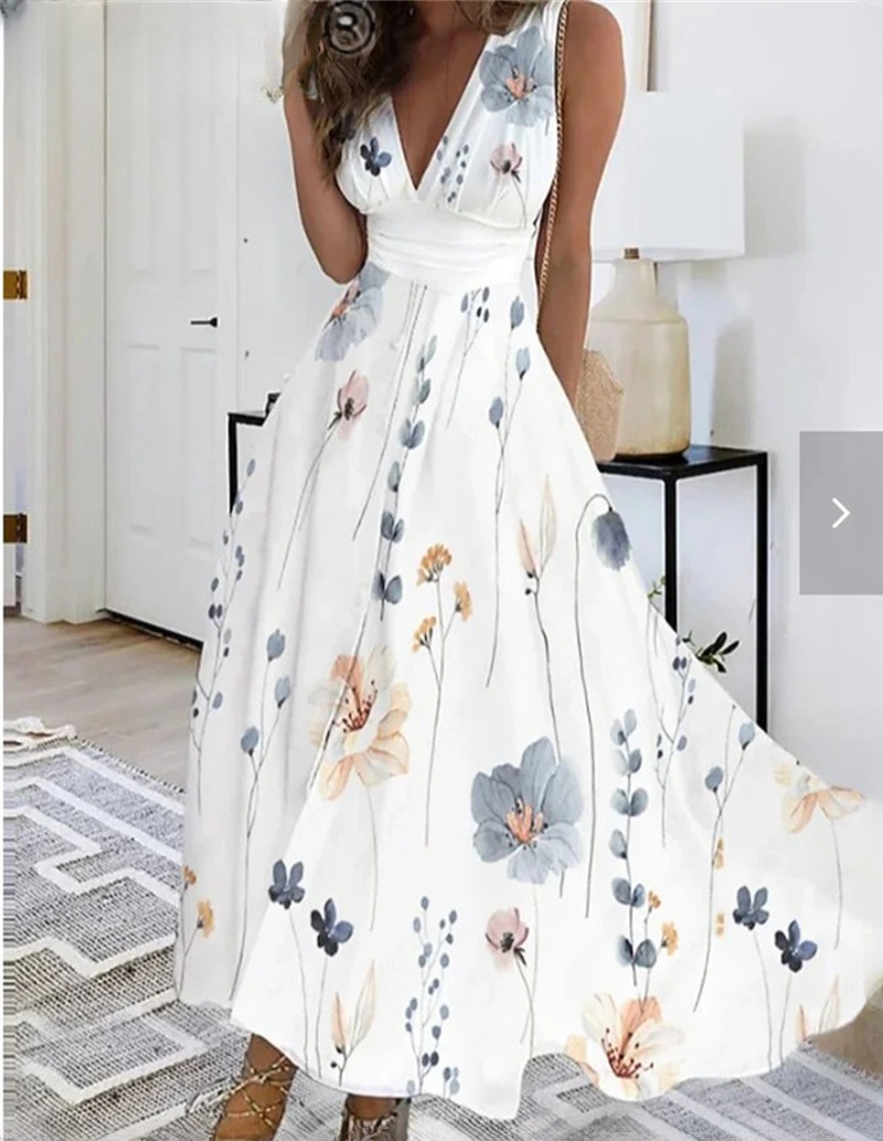 Be the first to review “Deep V Neck High Waist Sleeveless Vest Dress Elegant Print Party Wedding Dresses”