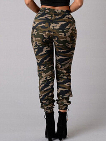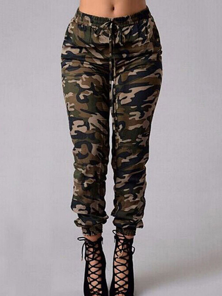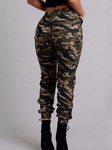 Women Camouflage Pants Elastic Waist Drawstring Casual Pants