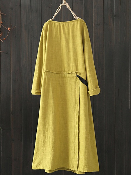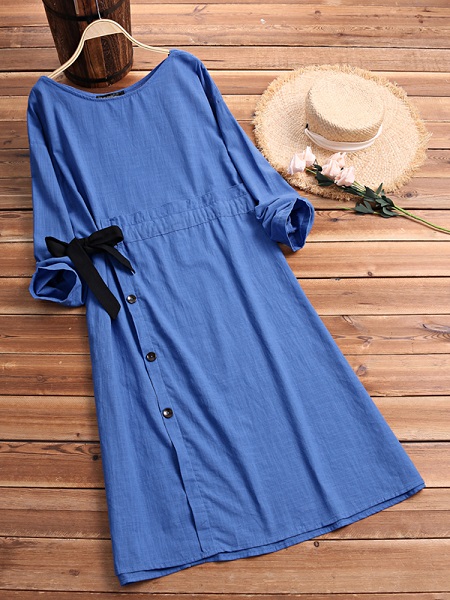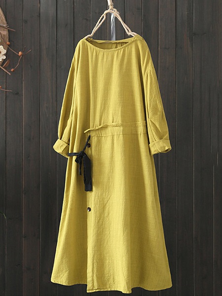 Women Drawstring Waist Vintage Dress