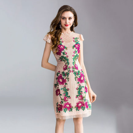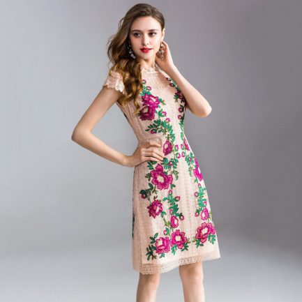 Be the first to review “Women lace Embroidery Floral dress Slim party short dress”