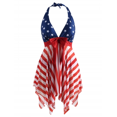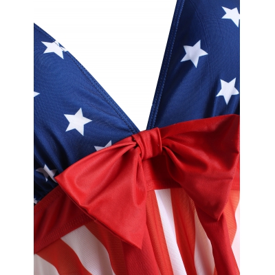 Women Plus Size Mesh Panel American Flag Tankini Set