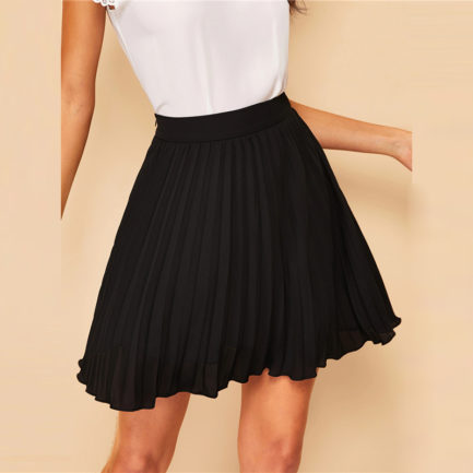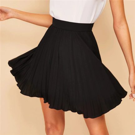 Be the first to review “Women Preppy Black Solid Above Knee Skirt”