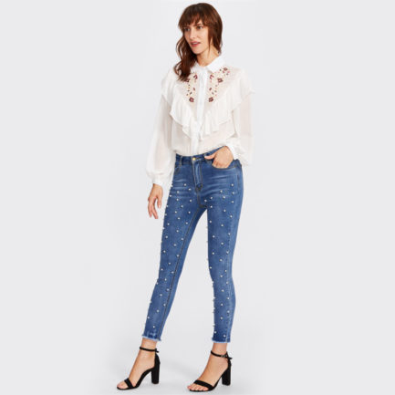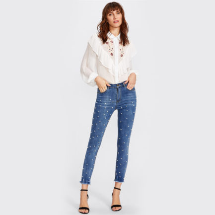 Be the first to review “Women Skinny Jeans Denim High Waist Bleached Zipper Pants”