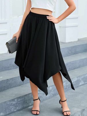 Women Skirt Black Mid-calf Length Asymmetrical Women Bottoms