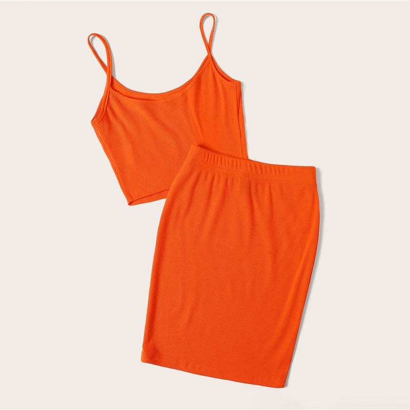 Be the first to review “Women Spaghetti Strap Rib-Knit Crop Cami Top And Skinny Skirt Set”