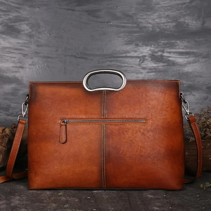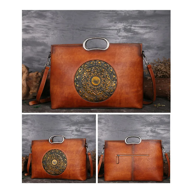 Vintage Genuine Leather Embossed Handbag Brush Color Handmade Crossbody Bags