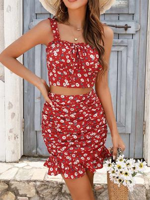 Women’s Clothing Skirt Set Casual Floral Print Two Piece Sets