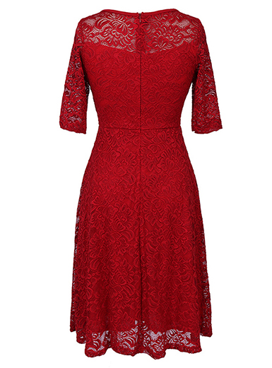 Look good in this chic new lace style dress. New this season, this dress is a great option for a fancy event or elegant occasion. It’s sophisticated and stylish without being boring. With a cool design and nice fit, it’s sure to look good on any body type and is perfect to wear in any season! Customers can choose between three colors: red, white, and blue. Whatever the occasion is, you can’t go wrong with this lace dress!