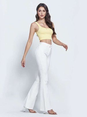 Women’s Jeans Cowboy Buttons Raised Waist Denim Bottoms