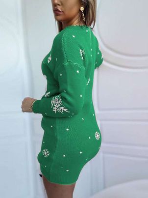 Women’s Knitted Dress Jewel Neck Long Sleeves Sweater Dresses