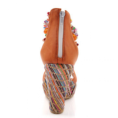 You will flip over these unforgettably unique women’s multicolored wedges! They are cool, comfortable, and beautifully constructed. Their design was geared toward comfort and good looks, and you get both in abundance with these great shoes! They feature multiple thin ankle straps that are embellished with colors and patterns that give these shoes their one-of-a-kind appearance. The sides are deeply textured, and feature vertically placed patterns. Two 1″ straps cross over the toe area of these peep-toe wedges. The footbeds are comfortably cushioned. These shoes are available for purchase in four base colors. Select the one you love most, and walk in style!