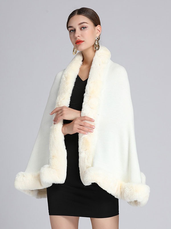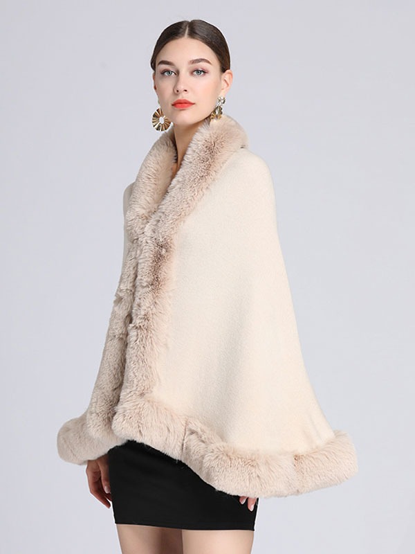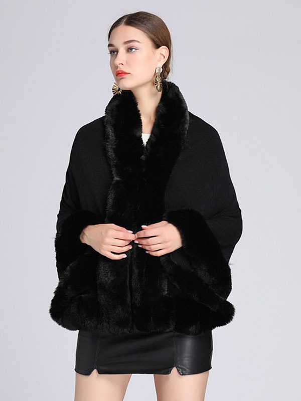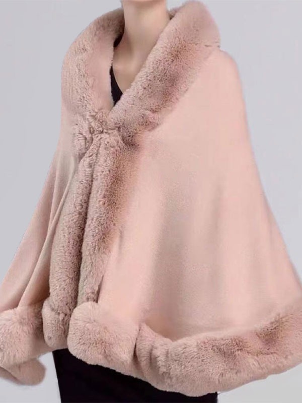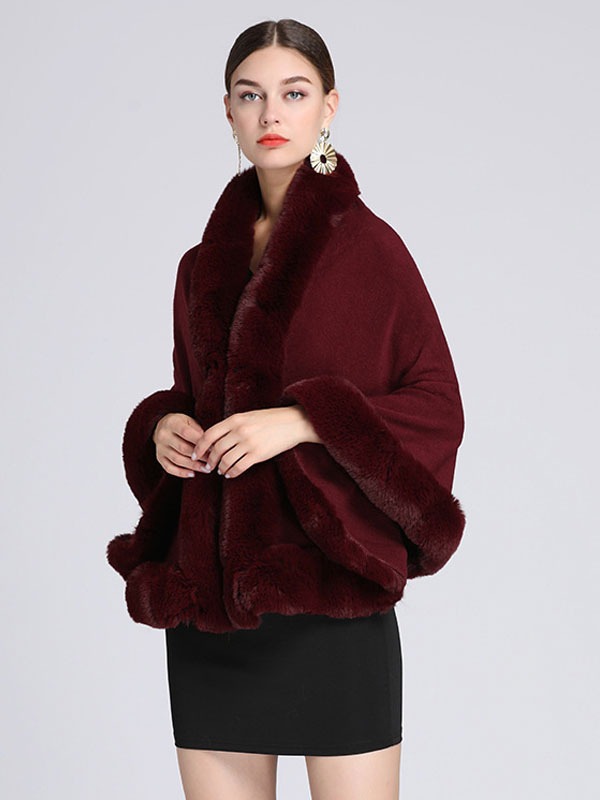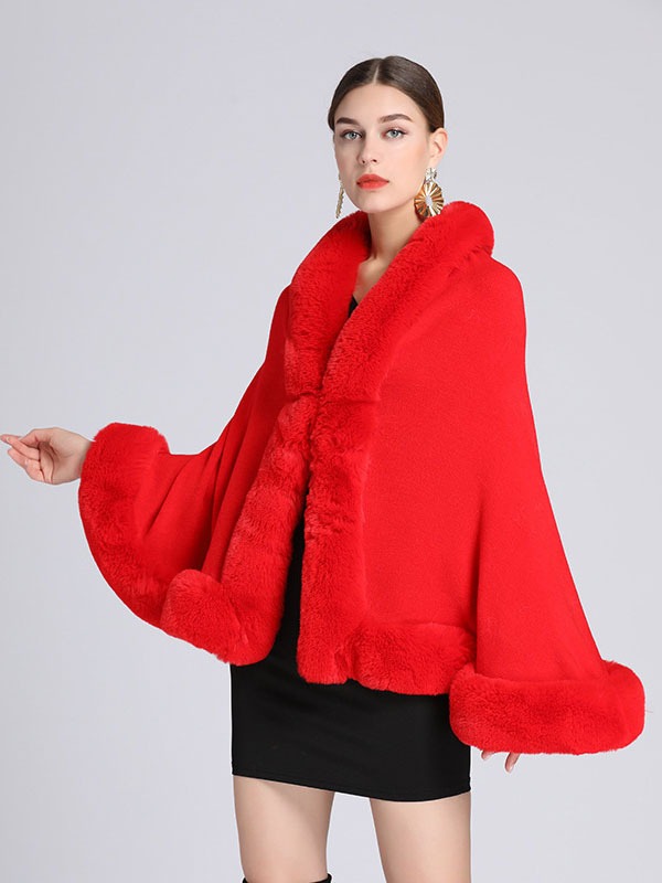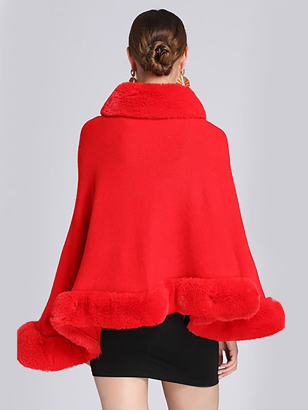 Women’s Red Poncho Coat Faux Fur Cape Spring Outerwear
