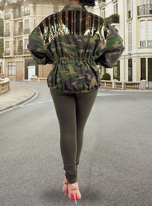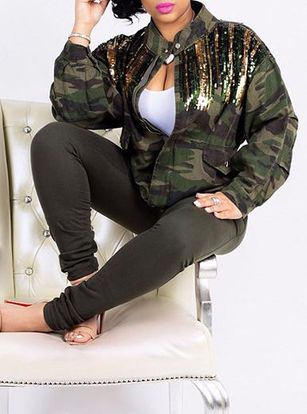 Be the first to review “Mandarin Collar Sequin Bling Short Camo Jacket”