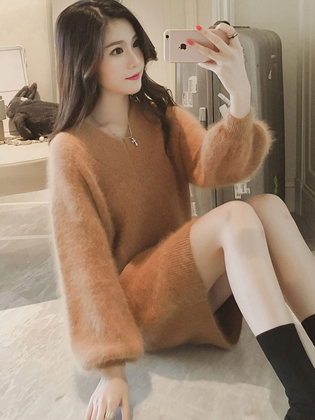 Be the first to review “Women’s Sweater Dress Soft Pink V Neck Puff Sleeve Midi Dress”