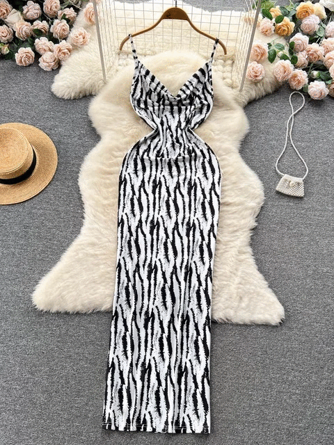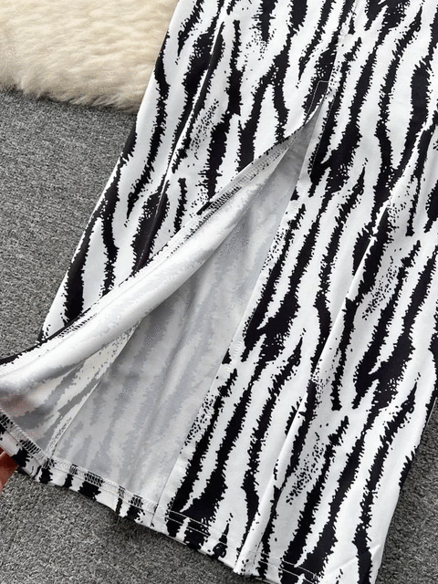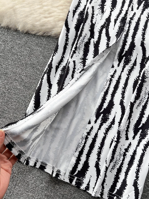 Zebra Print Swing Collar Spaghetti Strap Dress