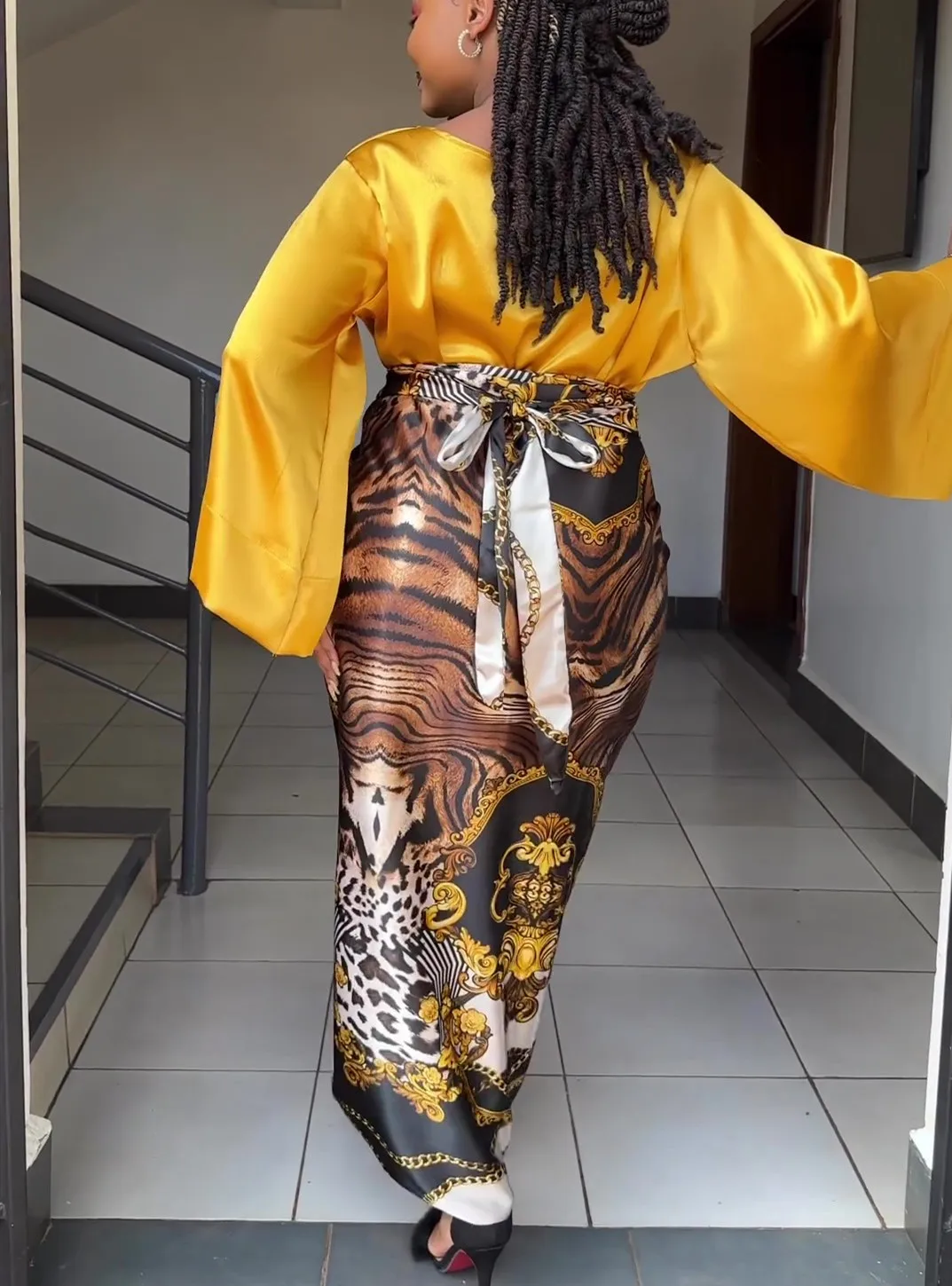 Tiger Print Long Dress Outfits Long Sleeve Party Vacation Dress Outfits